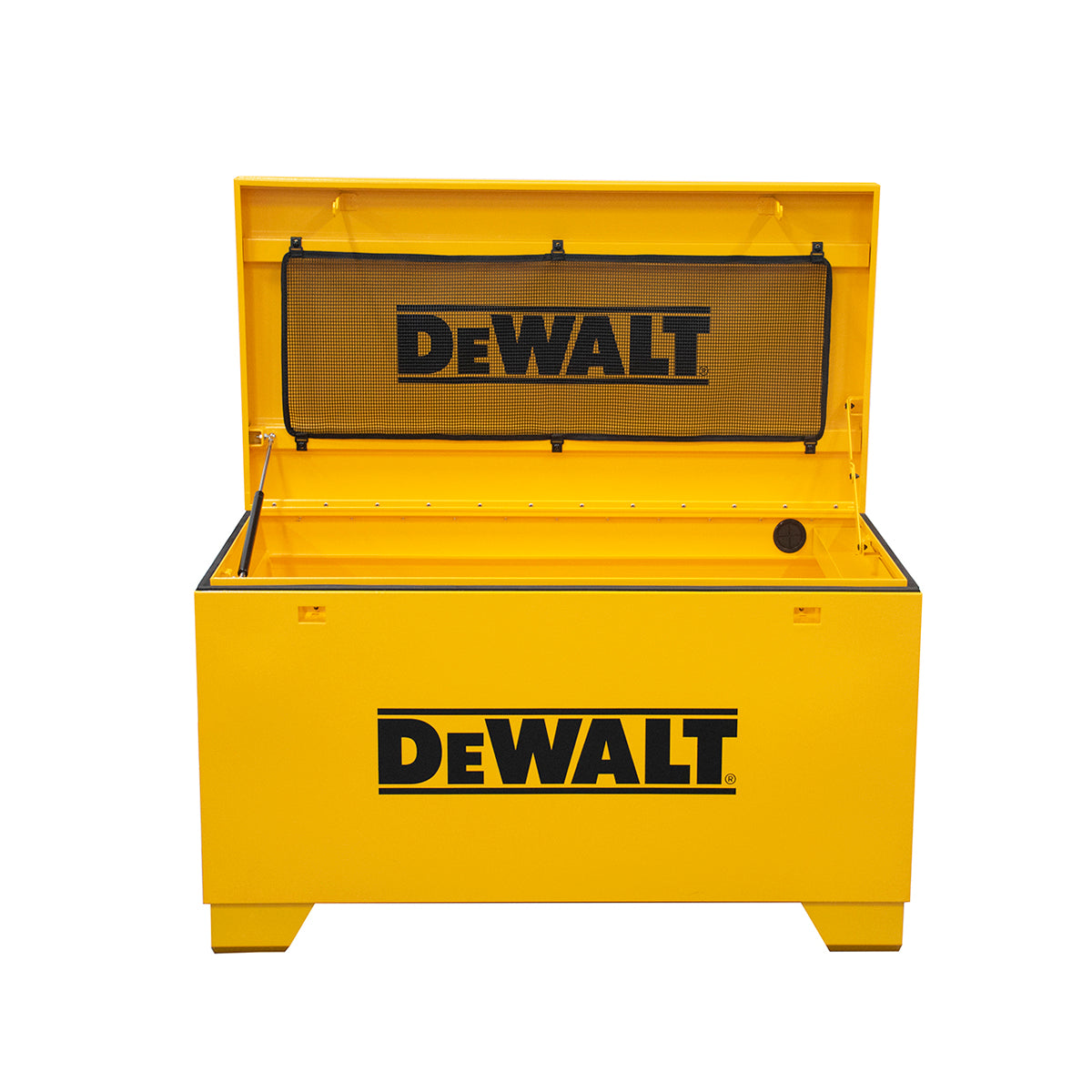 This 36″ DeWalt jobsite box is durable and ready to take on harsh conditions with features including heavy duty steel construction, recessed lock enclosures, weather resistant seal, and swing up handles.
