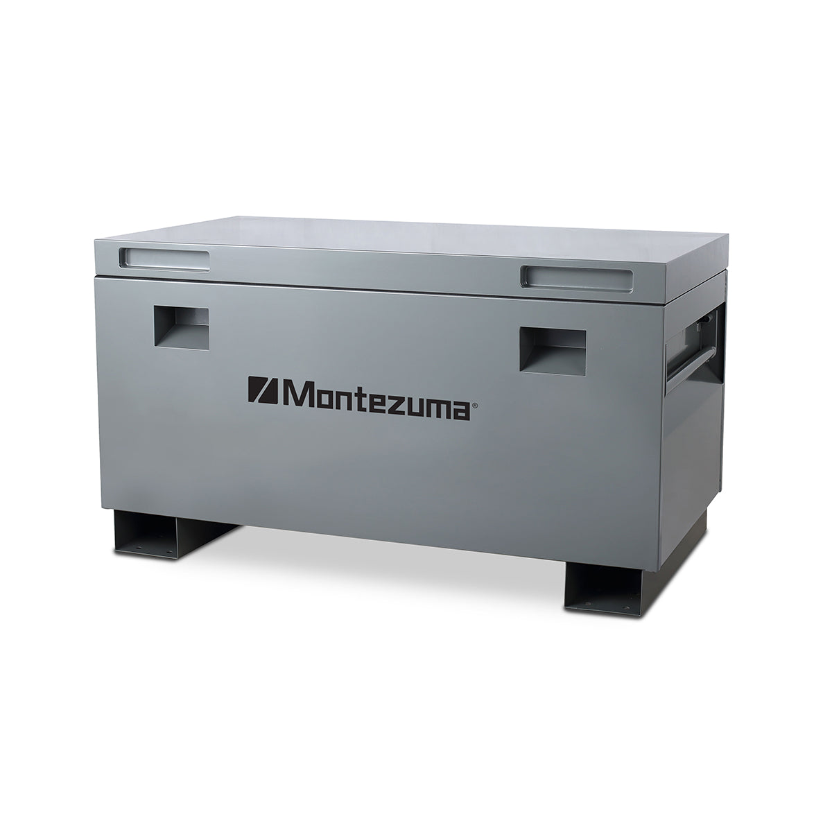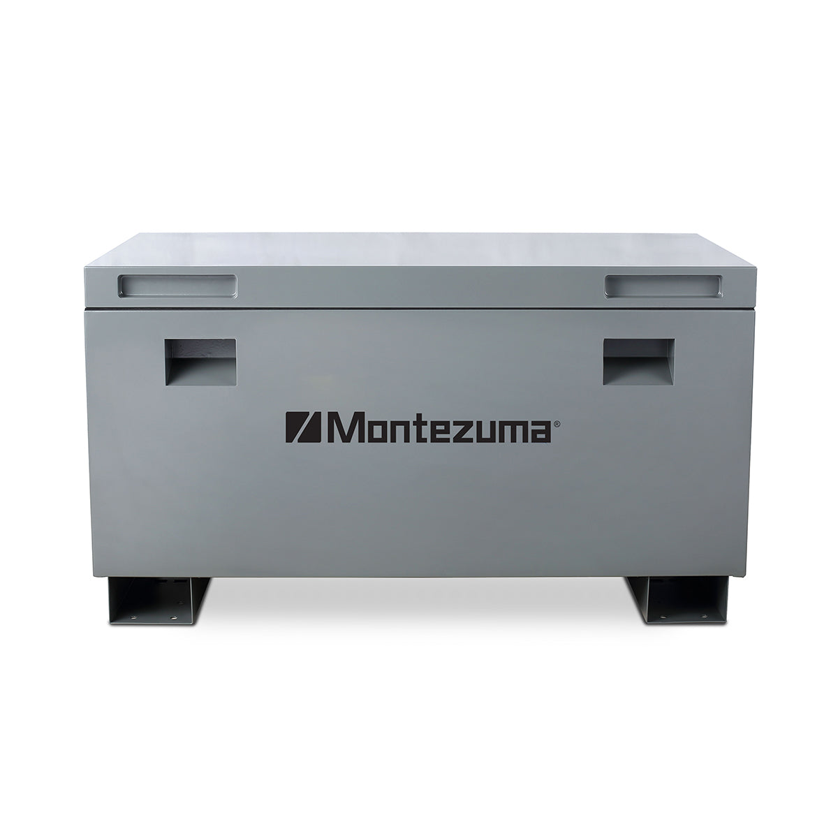 Our 45 in. Steel Jobsite Box secures your tools, supplies and equipment in the back of your truck, at a worksite, baseball diamond or other location. This rugged box is made to stand up to outdoor and everyday use. It is constructed of plate steel with a reinforced lid and fully welded seams to provide maximum strength and help keep out the elements. Skid rails have pre-drilled holes for securing to a floor or truck and make it easy for a forklift to move the box. Recessed, swing up steel handles and skid rails help move the box into place with a two person lift or fork lift.