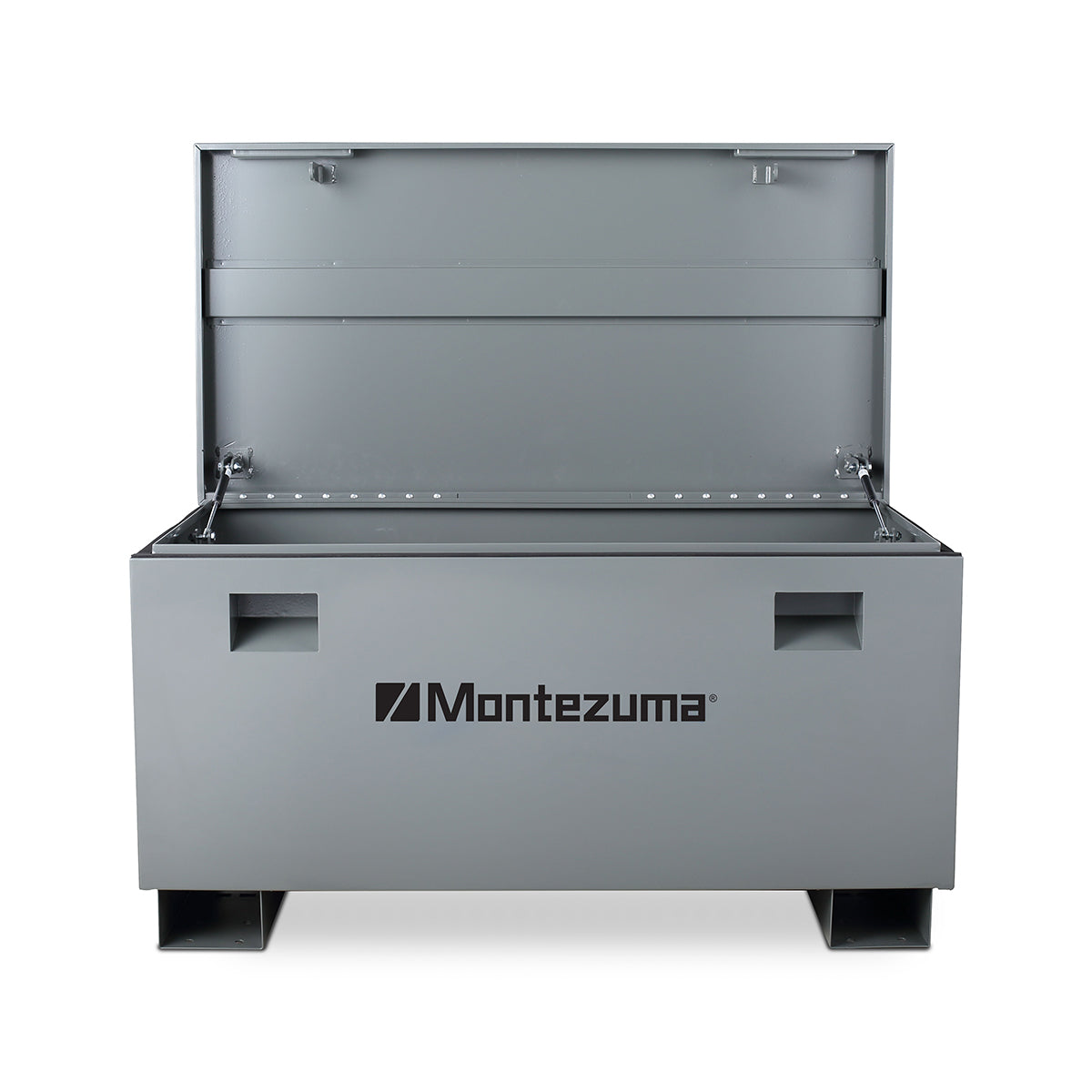 Our 45 in. Steel Jobsite Box secures your tools, supplies and equipment in the back of your truck, at a worksite, baseball diamond or other location. This rugged box is made to stand up to outdoor and everyday use. It is constructed of plate steel with a reinforced lid and fully welded seams to provide maximum strength and help keep out the elements. Skid rails have pre-drilled holes for securing to a floor or truck and make it easy for a forklift to move the box. Recessed, swing up steel handles and skid rails help move the box into place with a two person lift or fork lift.